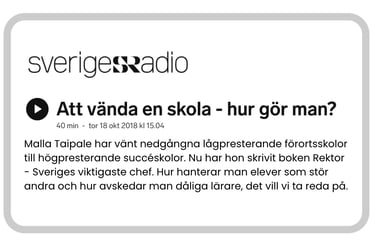 Under sina nära två decennier som grundskolerektor lyckades Malla Taipale vända utvecklingen på skolor med stora utmaningar. Hon blev en eftersökt föreläsare och uppmärksammades även i finska riksmedier.